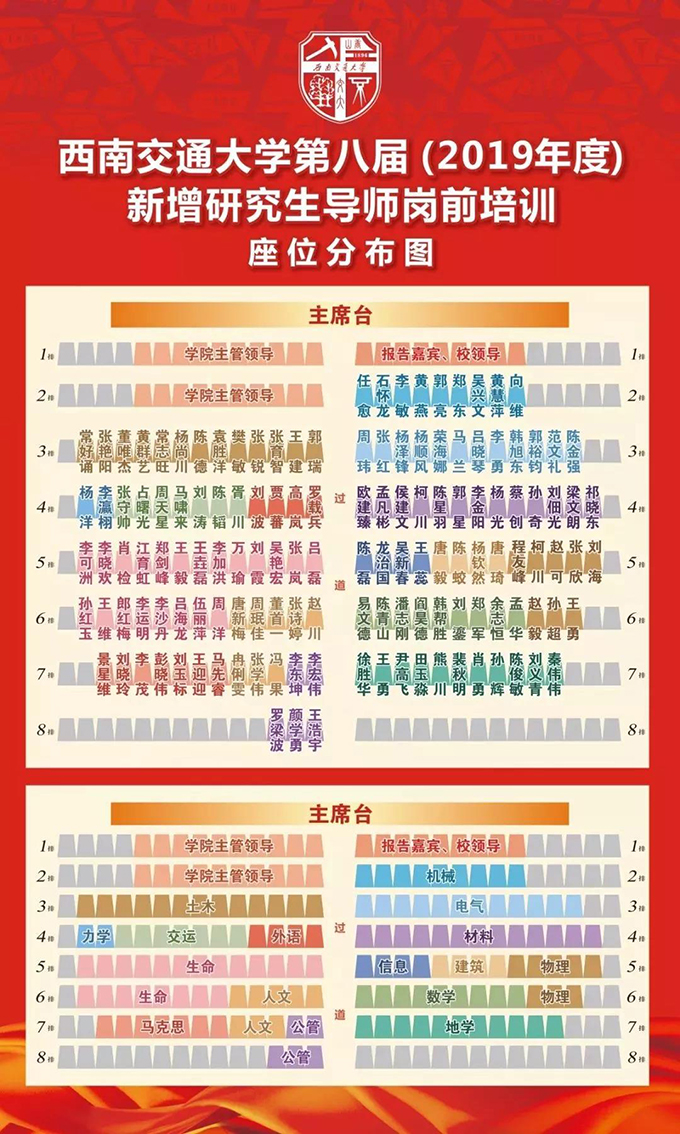 2. 请各学院主管研究生教育工作的院领导、各新增硕士研究生导师准时参会,并按照座位分布图就坐。