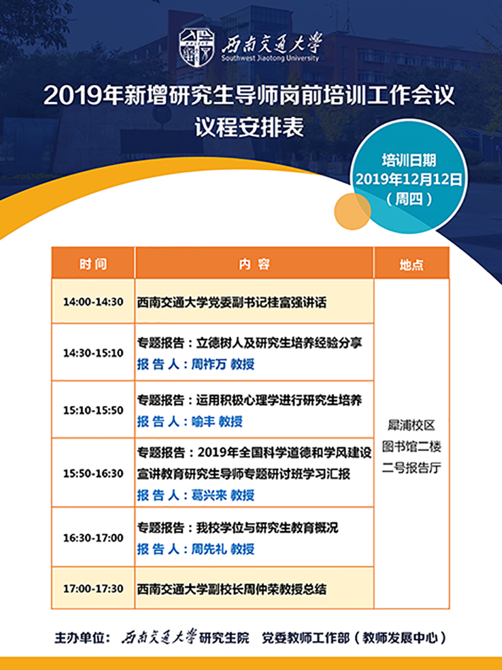 3. 为便于各位新增硕士生导师及时熟悉并掌握我校学位与研究生教育相关政策和管理制度,同时请关注西南交大学位办微信公众号(doswjtu),学位办将在微信号上及时推送导师培训及学位管理相关信息。