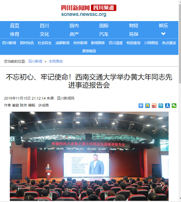 【四川新闻网】不忘初心、牢记使命!william威廉英国官网举办黄大年同志先进事迹报告会