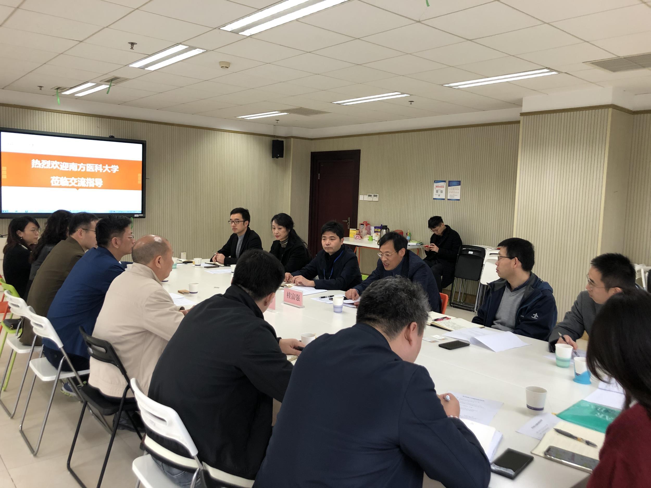 为了学习交流教师思政与师德师风建设、教师发展培训、教育教学等方面的经验,2019年11月14日上午9:00,由南方医科大学熊梦辉副校长带队一行8人来到我校调研学习。我校由校党委副书记桂富强同志、党委教师工作部(教师发展中心)部长苏谦同志以及教工部、人事处、教务处、学工部的相关负责人出席了调研座谈会。